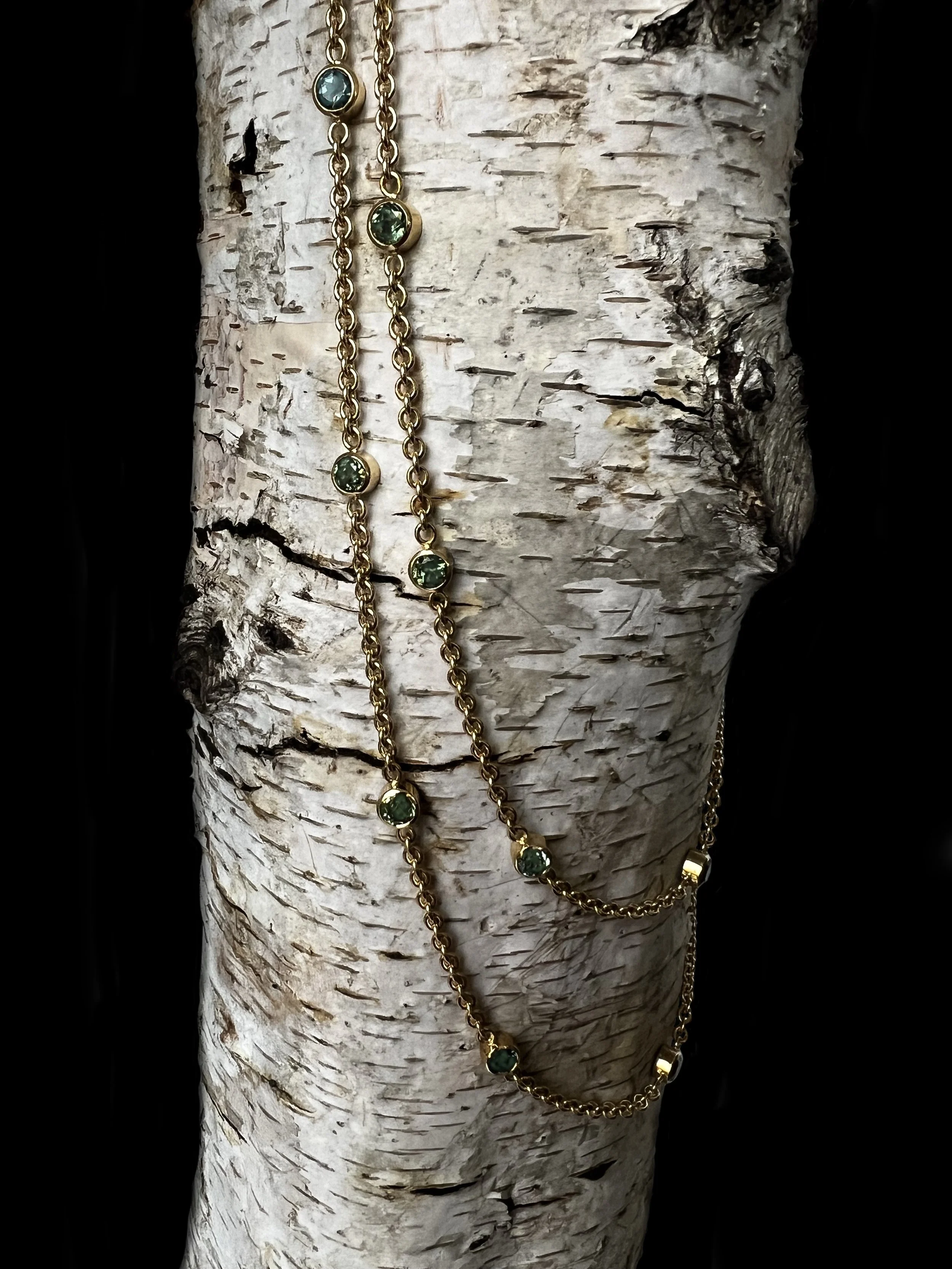 Evergreen Necklace : Australian Parti Sapphires (18x) total 12.35ct set in 18k yellow gold. SOLD $42,000 2025