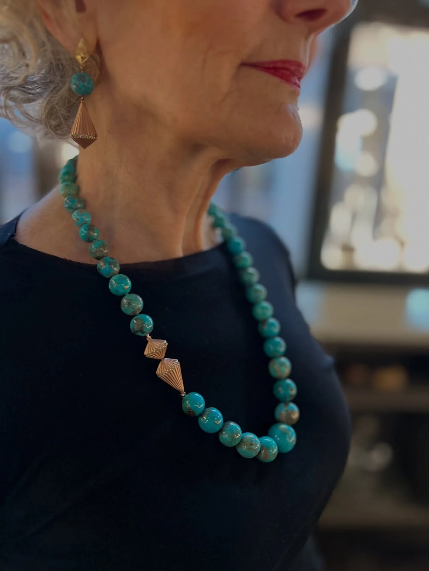 Black Onyx beads (500cts) and Chrysocolla/malachite/jasper/druzy (41.30ct) from Winton, Qld set in 18k yellow and rose gold. $16,900.00 SOLD