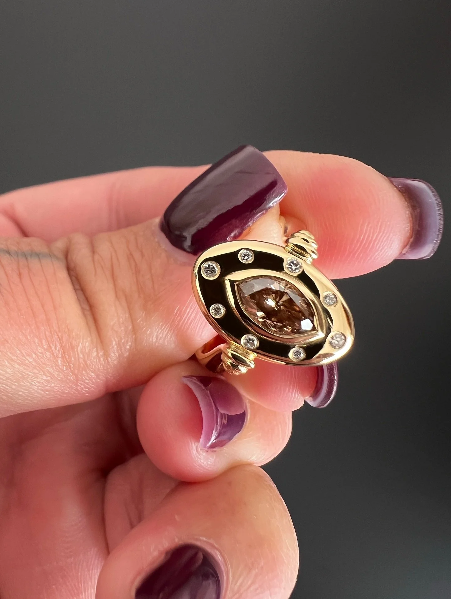 Smokey Citrine (9.90ct) from Colorado, U.S.A faceted by Brett Kosnar armoured in 18k yellow, white and rose gold. $11,900.00 SOLD