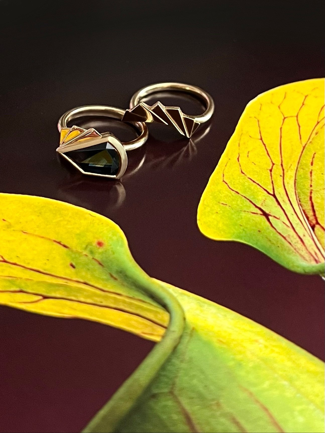 โUnfurling Frondsโ Ring : Topaz with Limonite (122.67ct) set in oxidised silver and 9k rose gold details. SOLD $7,900 2024