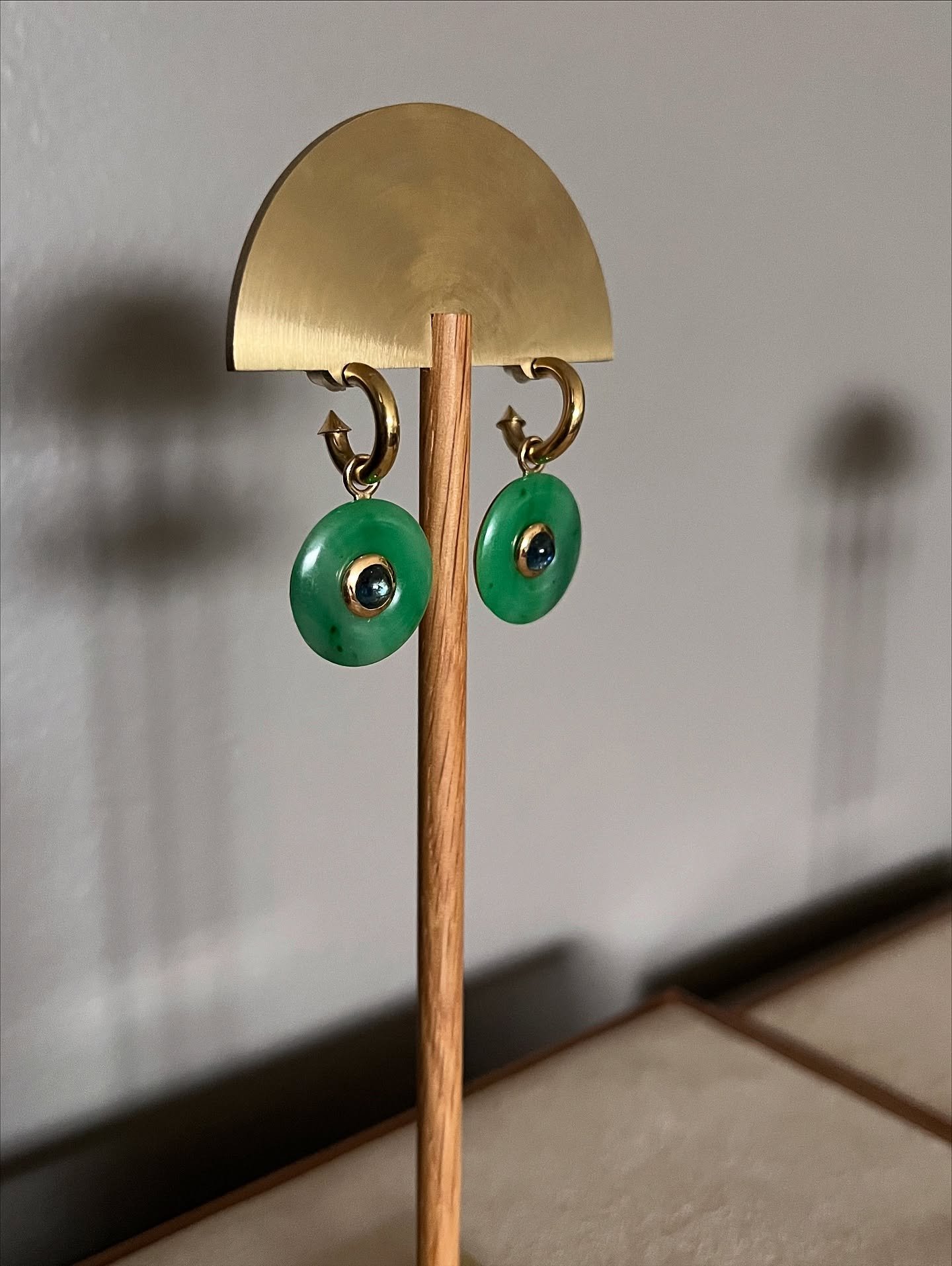 Black Onyx (30.20ct) and Marlborough Chrysoprase (3.20ct) armoured in 18k yellow, rose and white gold earrings. $14.900.00