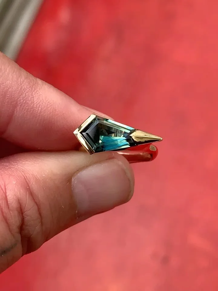 Australian Parti Sapphire (3.77ct) armoured in 18k yellow, white and rose gold. $18,200.00 SOLD