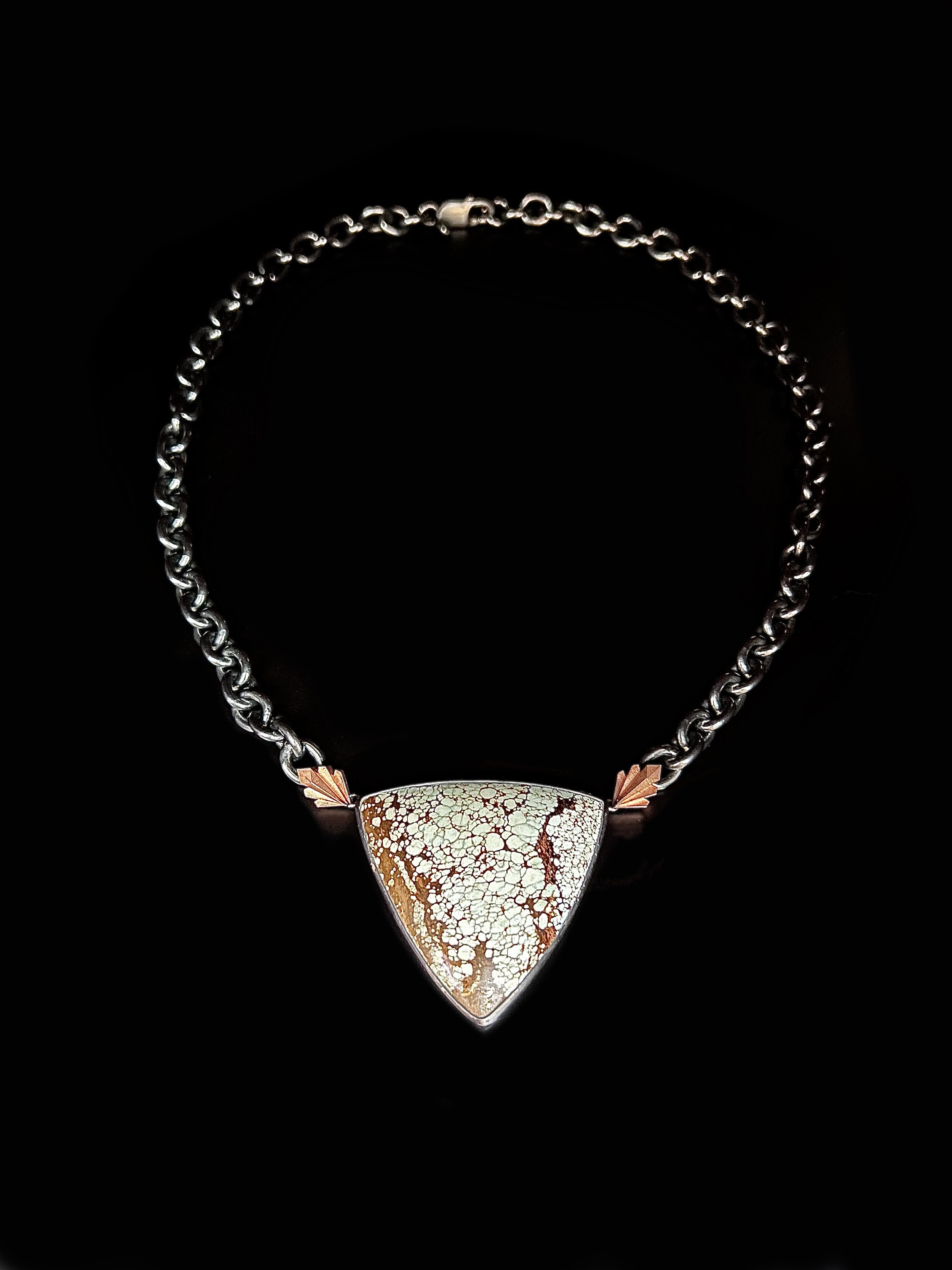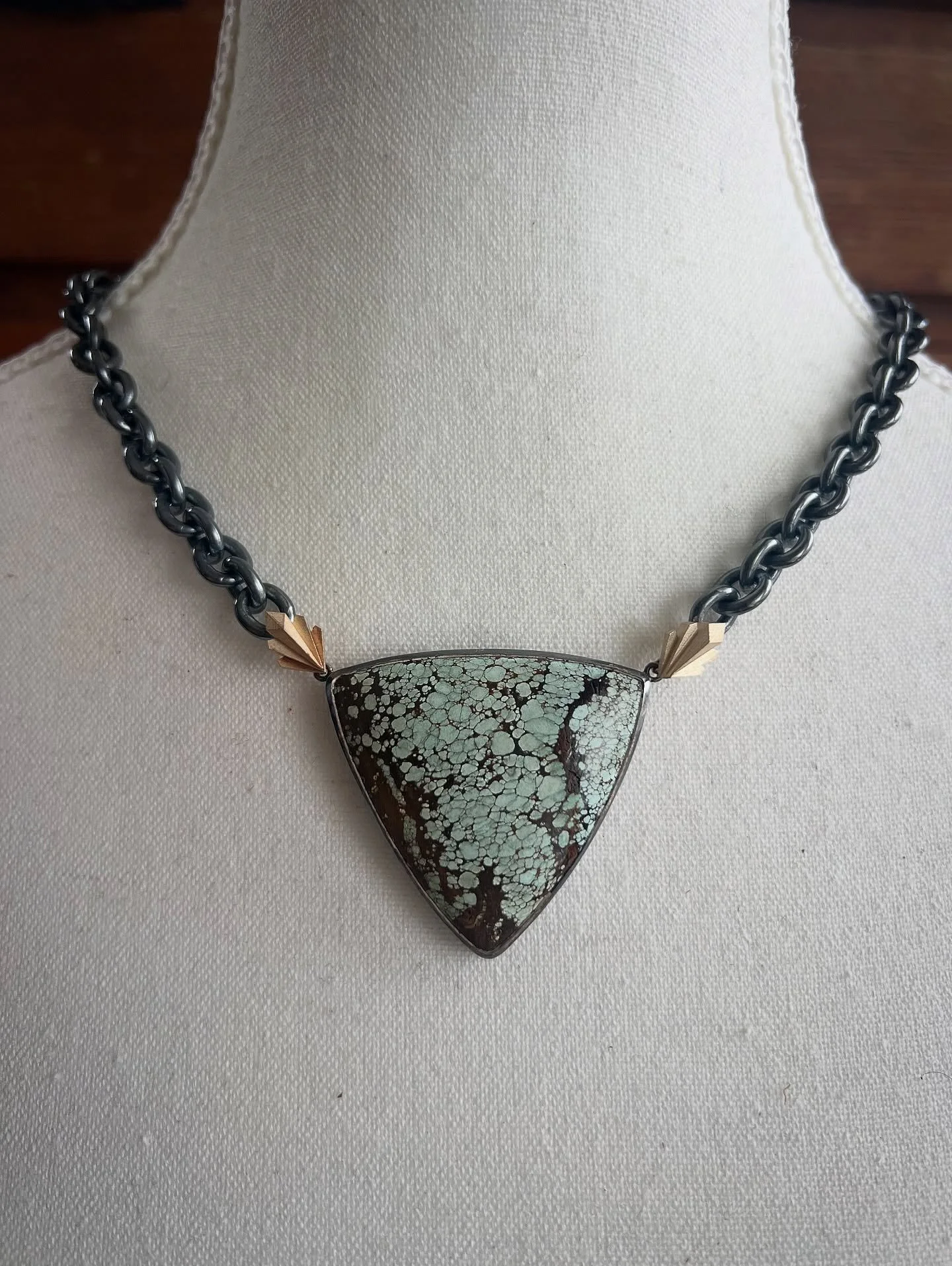 Oceania Necklace : Turquoise (90.90ct) from Amaroo, Western Australia in oxidised silver and 9k rose gold. *Available