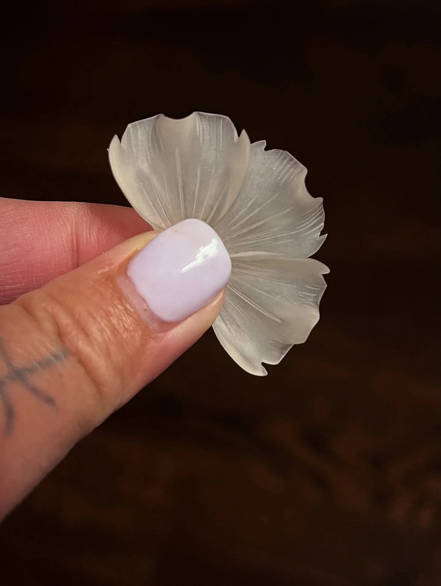 βBreath of Mauriβ Earrings : Carved Turkish Chalcedony (15.51ct) in oxidised silver and 9k rose gold. SOLD $7900 2024