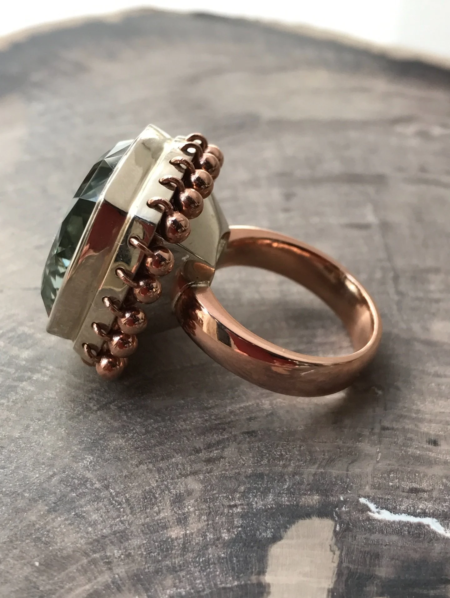 Quintessence of Nature : Australian Chrysoprase armoured in sterling silver and rose gold. *Available